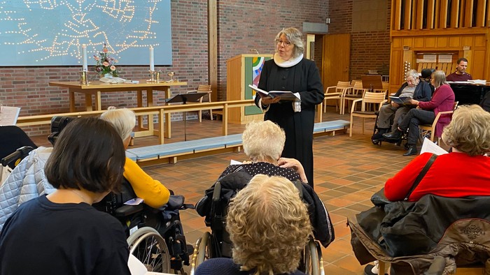 Dette er en demensvenlig gudstjeneste for de ældste i sognet med fællessang og kaffe. Gudstjenesten er ved sognepræst Lillian Jordan Nielsen, der også er demenskonsulent ved Roskilde Stift.
